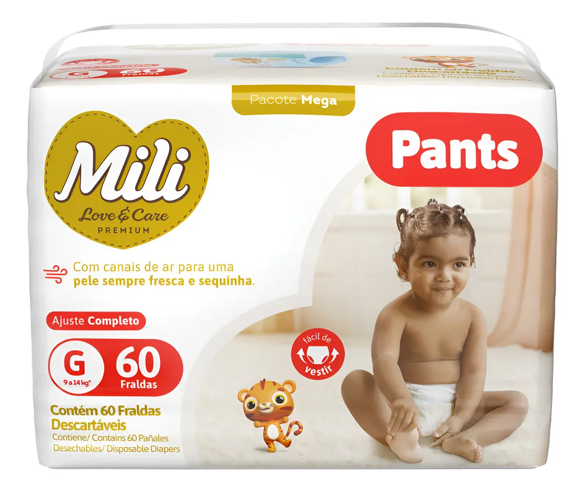 As fraldas Mili Love & Care Pants foram desenvolvidas para oferecer conforto e segurança para o seu bebê.