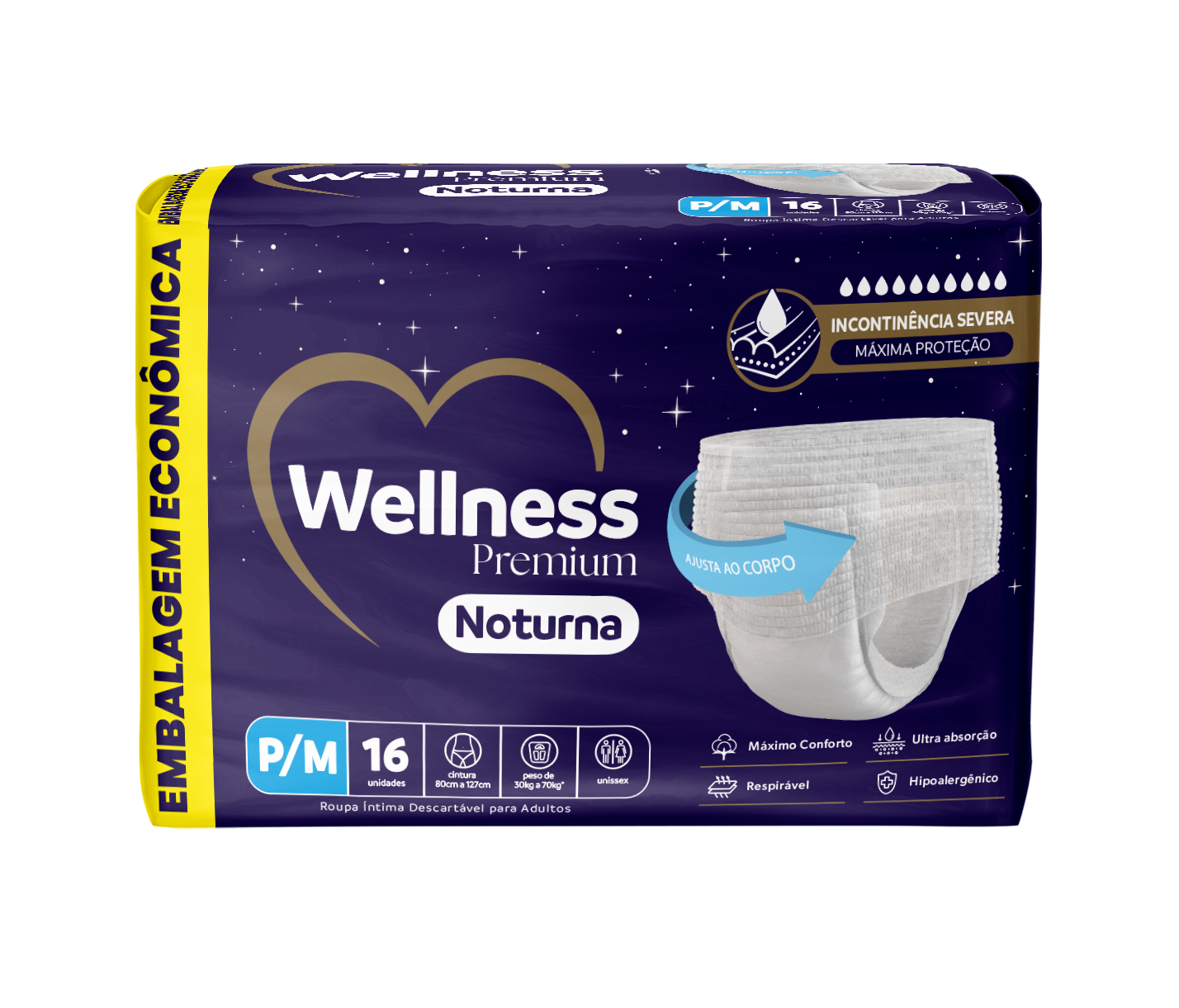 Absorção extra e barreiras laterais, é indicada para incontinência severa, oferecendo máxima proteção contra vazamentos e garantindo noites mais tranquilas.